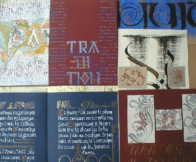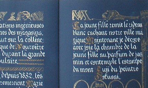 ![]() C'est sous la forme d'un conte que nous circulons dans sa ville natale Lyon, grâce à un lampion japonais. Mais ce parcours initiatique, dans une couleur légensaire, allait être édité de la main de Danielle B. en jouant successivement à l'écrivain, au moine copiste puis l'enlumineur. Le tout présenté dans un format académique pour réaliser des proportions rigoureuses. La tradition du livre est entièrement respectée, pour approcher toutes les difficultés de son élaboration, en particulier "le canon secret". Il servit de base à de nombreux manuscrits de la fin du Moyen - Âge. ![]() Cet ouvrage unique en français, possède sa version unique en anglais, ce qui permettra aux anglophiles d'aborder le récit de la déesse des lumières : "Les illuminations de Gwatten". Une ambiance régionale qui parvient à fondre la réalité moderne à l'univers légendaire.